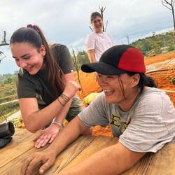 Mit dem Bus ging es zwei Stunden außerhalb von Ho Chi Minh. Mit mir im Bus saß Adi aus Israel, Niklas und Jolie aus Dänemark, wobei Niklas Deutscher und Jolie Brasilianerin war und Alex aus Frankreich. Ich freute mich endlich andere Luft einatmen und wieder einen klaren Himmel sehen zu können. Uns begleitete auch Terung. Sein Neffe ist der CEO des Unternehmens. Er war wirklich nett und fiel mir jetzt schon mit seiner positiven Art auf. Eigentlich lebt er in den USA aber wenn es kalt wird, zieht es ihn eher ins warme. ☺️