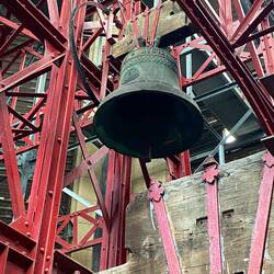 … ich trete in die Kirche ein und sehe drei Personen und eine Führerin vor der Turmtür … 🗼
