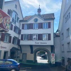 Nach rasanter Abfahrt - zuerst auf dem grobkiesigen Veloweg, bei der ersten Kreuzung mit der Hauptstrasse spurte ich dann auf diese ein … 😜 - besichtige ich Altstätten.