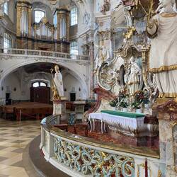 Die ehemalige Benediktinerabtei Kloster Banz liegt weithin sichtbar auf dem Banzberg hoch oberhalb des Maintals in Oberfranken.