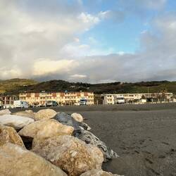 Wir bleiben zum Abendessen und länger 😉 und fahren dann bequemer Weise mit dem Taxi zurück zum Camper Platz. Die Taxifahrt war spannend, Gü hatte die beste Thunfisch Pizza seines Lebens und istLue lisää