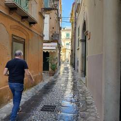 Mit dem Zug hinein ins pure italienische Leben! Hier ist buntes Treiben, als wäre volle Saison, wir sind überrascht, wie Straßenhändler, Geschäftsleute und Besucher den winterlichen TemperaturenLue lisää