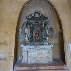 Einsam stehen wir auf dem Gelände, fast ein wenig beklemmend. Der Morgen ist wieder wunderbar, der Himmel strahlend blau! Wir spazieren noch zur Wallfahrtskirche und frühstücken standesgemäßLue lisää