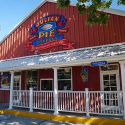 Aber zuerst durften wir noch eine völlig verrückte Straße fahren, die sich mit engen Kurven immer höher durch die Anza Borregowüste hoch in die schroffen Berge schraubte. Da wir unsere Route aufgrund von Waldbränden etwas ändern mussten, kamen wir nicht direkt nach Julian, die Welthauptstadt des Apple Pie, aber auf einem kleinen Umweg dann doch. Und es stimmt, die halbe Kleinstadt duftet nach köstlichem Apfelkuchen. Wir konnten nicht widerstehen und haben einen für stolze 23 Dollar gekauft. Und der war wirklich schweinelecker. Eine Hälfte ist schon weg.