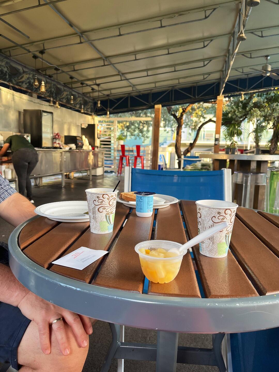 Heute morgen fix zum Strand und ins Wasser, danach gemütlich frühstücken @Thomas unsere Unterkunft hat griechisches Flair :))
