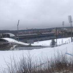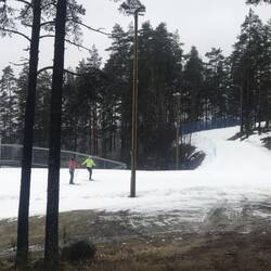 kaum noch Schnee, nur die präparierten Loipen mit Kunstschnee für Langlauf
