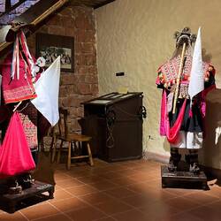Im Museo Costumbrista (Kostümmuseum) sind verschiedenste Outfits aus der Kolonialzeit gezeigt, als die Spanier ihre Mode bis nach Bolivien brachten. Die Kostüme der TänzerInnen, die wir bei Umzügen auf der Straße gesehen haben, sind offensichtlich noch stark von dieser Zeit inspiriert.