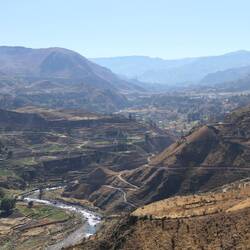 Wir starten auf eine zweitägige Tour zum Colca-Canyon. Die vier Stunden von Arequipa entfernte Schlucht ist 1.200m tief und damit die dritttiefste Schlucht der Welt! Tanja freut sich besonders auf die Kondore, riesige Vögel mit bis zu 3m Spannweite, die morgens die Aufwinde der Schlucht zum Aufsteigen nutzen und nur über 5.000m über dem Meeresspiegel leben.