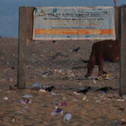 Oh die Arme Kuh sucht Futter am vermüllten Strand😩