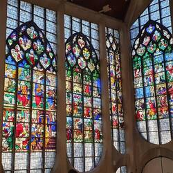 Het plein waar Jeanne d'Arc op de brandstapel is omgekomen was even zoeken, maar zeker de moeite waard. Op de plek waar vroeger een kerk had gestaan is na de 2e WO een moderne kerk gebouwd waarin zijLäs mer
