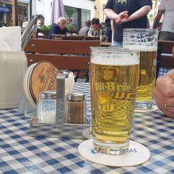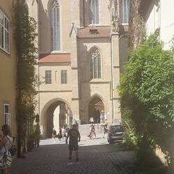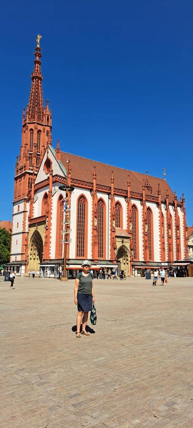 Grotere stad en startpunt van de Romantische Strasse. De auto voor een soort paleis geparkeerd : Residence. Later daar in de schaduw op een terras biertje gedronken. De kerk of kathedraal vonden weBaca selengkapnya