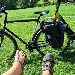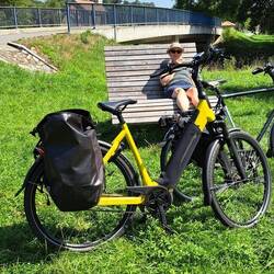 Veel stijgen en dalen, viel nog niet mee. Vooral Michael had het zwaar. Conclusie verkeerde fiets qua versnellingen. Ongeveer totaal 20 km gefietst.
