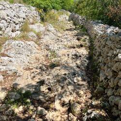 Mein Ziel heute war Pantálica oder genauer die Necropoli di Pantálica, also die Totenstadt. Das Ziel liegt nur wenige Kilometer entfernt von Sortino. Aber wegen einer gesperrten Straße im Ort habe ich beim besten Willen nicht da hingefunden, wo ich hinwollte. Und in den super engen Strassen, alles zugeparkt, Samstag Vormittag so viele Leute unterwegs, dann immer wieder abbiegen, mit dem Bus manchmal nur um Zentimeter durchzukommen, habe ich verzweifelt aufgegeben. Also Google Maps befragt: Ja, etwas zurück, wo ich herkam, dann eine kleine Strasse, dann komme ich von der anderen Seite zum Ziel. Die kleine Strasse führte teils nur einspurig in Serpentinen und Kehren steil den Berg hinunter, dann rechts abbiegen, dann wird die Strasse schmaler, dann nur noch Schotter und dann „bitte wenden“. 😀 Ich war nun buchstäblich in the middle of nowhere und selbst zu wenden ging nur so gerade eben.