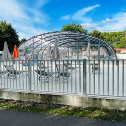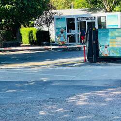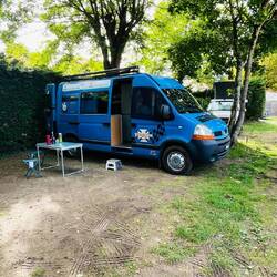 Hoy 06.09.25 llegamos al camping. Hace un calor insoportable, llegamos hoy a los 34 grados centígrados. Esto es solo para pasar la noche y mañana continuar hasta la frontera de Francia con España. Por otra parte aquí hay una fiesta en un estadio en las cercanías y son las 10 de la noche y los bajos del equipo de música siguen retumbando.