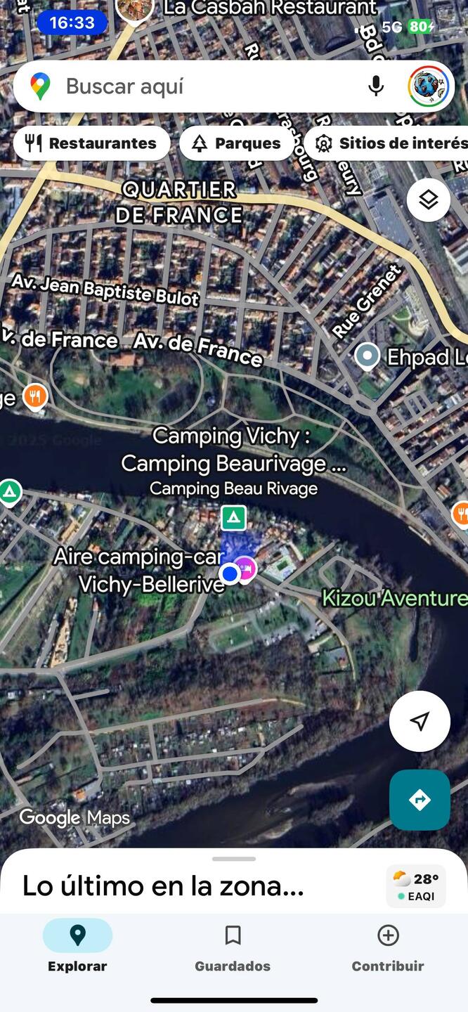 Hoy llegamos al „camping Beaurivage“ en Vichy, Francia.. permaneceremos una noche para seguir mañana a Limoges. No tendremos tiempo de visitar la ciudad de Vichy, que por lo demás tiene la fama de haber sido Colaboracionista durante la ocupación Nazi.