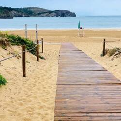 Hoy salimos desde Saint Jean de Luz con destino a Gorliz en España. Por fin después de una semana llegamos a España. Hicimos unos 150 Km y nos tocó bastante lluvia por todo el camino. Ahora ya estamos instalados en el camping Arrien en Gorliz una vez conectada la corriente a la camper y una vez extendido el techo portátil de la misma, nos dispusimos a estirar las piernas visitando la playa de Gorliz. Nos llevamos unas cuantas impresiones buenas por la diversas instalaciones para el disfrute de la playa, como una buena Promenade, una playa bien mantenida, un equipo de rescata para bañistas bien organiza, pasarelas en acero inoxidable y un largo etcétera. Quedamos bastante bien impresionados. La nota criticable estuvo en algunos botes que se ve que están anclados hace muchos años y en franco estado de deterioro.