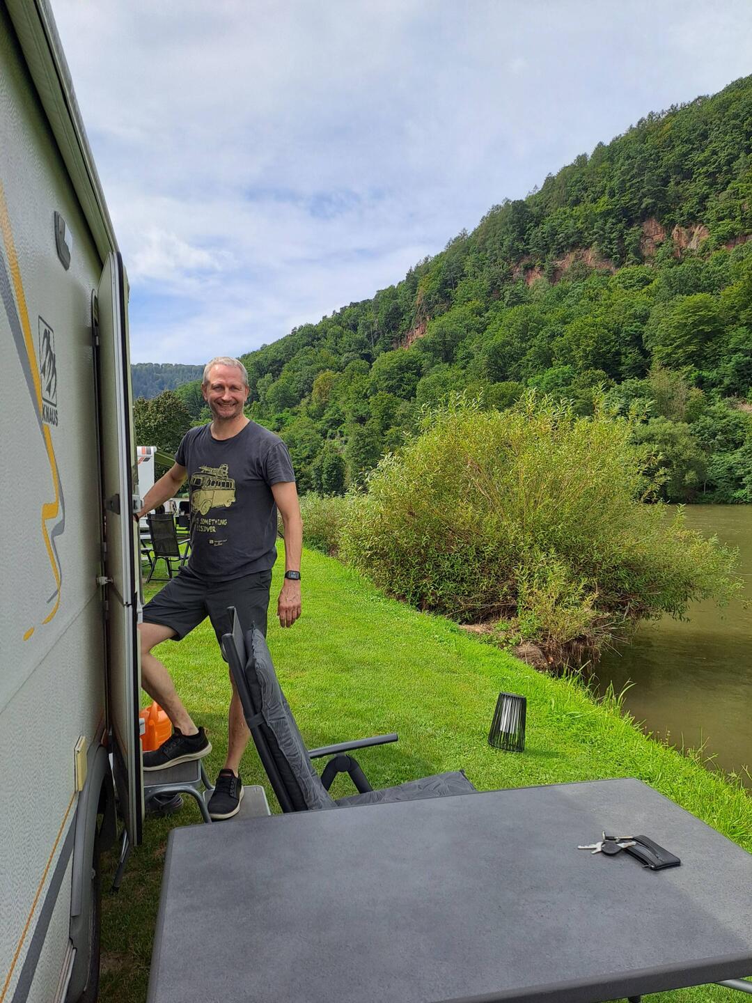 Auf unserem 1. Campingplatz in Neckargemünd bei Heidelberg angekommen - es gibt schlimmere Stellplätze 😉🤗