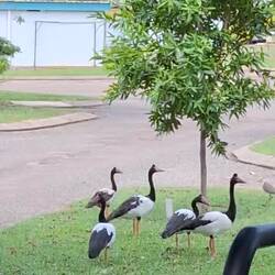 Am frühen Morgen spazierte eine Elstergänse Familie gemütlich bei uns vorbei. Die Tiere sind sehr scheu und übernachten auf Palmblättern🌴🌴🌴