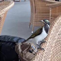 Ein blaufaced Honigfresser (auch Bananenvogel genannt)😳 leistet uns noch Geselkschaft, in der Hoffnung auf ein paar Krümmel vom 🥐 😆