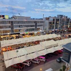 Wir wurden informiert, dass wir in der Hotelanlage (Shoppingcenter) bleiben sollten, aus Sicherheitsgründen 😳 Abend's konnten wir den Night Market direkt vor der Türe geniessen 😋