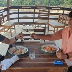 Die letzten 2 Tage verbrachten wir mehrheitlich auf dem Rio Negro. Gestern machten wir einen Ausflug auf einem typischen Amazonas-Schiff in einer kleinen Gruppe. Wir konnten im Rio Negro mit pinken und grauen Delfinen schwimmen, eine Rangerstation besuchen und einen gediegenen Lunch mit Amazonas-Fisch geniessen. Nach dem ganzen "Stress" ruhten wir uns auf der Rückfahrt in den Hängematten aus.