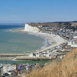 Weiter ging es nach Le Tréport. Hier jetzt auch endlich mit richtiger Steilküste. Mit der kostenlosen Standseilbahn ging es dann noch auf die Klippen. Eine tolle Aussicht hatte man von dort oben!