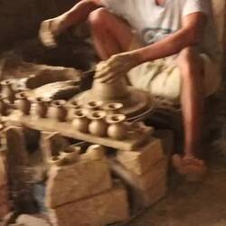This industry thrives because the cups and bowls are bio degradable and usually considered one time use. The man at the pottery wheel is adept at making bowls, turning out one every 10 seconds or so.Leia mais
