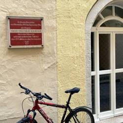 Sights around Regensburg. The plaque is a stone commemorating a person executed by the Nazis. There are more than a few.