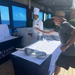 Another gorgeous day, we will miss this! A brisk walk around the deck; an afternoon talk about inventions, coffee at the usual place, dinner and a final show/goodbye from all the staff.