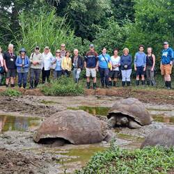 The rough sea eventually calmed enough to get the speed boat speeding and we arrived back on Santa Cruz. We are going to a tortoise ranch. Jorge is our guide and as we ride the bus he has about 30Read more