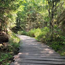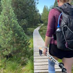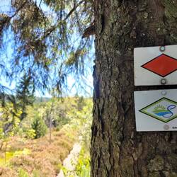 Aber irgendwann musste es weiter gehen hinab zum Mummelsee. Ein schöner See aber sehr touristisch gemacht. Es erinnerte mich etwas an den Titisee mit Souvenirläden, nur etwas kleiner. Naja, weiter ging's! Es folgte ein langer kleiner Pfad über mehrere Grindenköpfe hinweg bis zum Ruhestein, wo ich mir ein gutes Mittagessen gönnte. Und dann, was lese ich da?! Umleitung des Westweges wegen Baumfällarbeiten!!! Dann mal schnell Komoot fragen und die Route umplanen....Das bedeutet etwa 2-3 Kilometer zusätzlich aber Sicherheit geht vor! Kurz vor dem Schliffkopf erreichte ich wieder den Westweg und alles nahm seinen normalen Lauf. Der Schliffkopf war vor knapp einem Jahr das Trailende meiner Murgleiter, so war es sehr schön für mich wieder hier zu sein. Nach dem Schliffkopf folgten lange Strecken auf breiten Forstwegen. Unterwegs nahm ich noch den Lotharpfad mit, ein ca. 1 km langer schöner Pfad auf Holzpaneelen. Er wurde 2003 errichtet um zu zeigen, wie die Natur sich nach dem Sturm Lothar 1999 selbst von alleine wieder aufbaut. Inzwischen ist ein dichter grüner Wald gewachsen, zwischendrin liegen die alten morschen Hölzer, die der Sturm umgerissen hat.