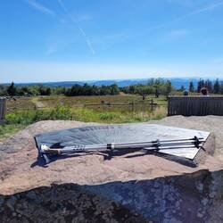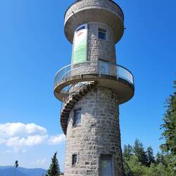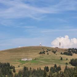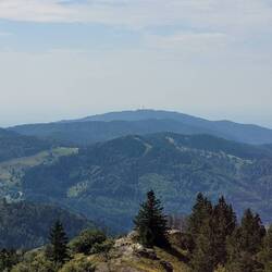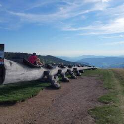 Es folgten breite Forstwege und ich hoffte darauf, dass bald die Rufenholzhütte kam, denn dort wollte ich eine Pause einlegen. Vorher gönnte ich mir jedoch noch eine kleine Limo an einer "Brunnentankstelle" die es hier öfter auf dem Weg gibt. Zum Glück, denn das ist für Wanderer bei den Temperaturen eine wirkliche Wohltat. Der Aufstieg von der Rufenholzhütte bis auf den Feldberg verlief auf einem schönen schmalen Pfad, zum Teil sogar auf Holzplanken. Das machte den Höhenaufstieg etwas interessanter und abwechslungsreich. Oben angekommen beschloss ich, einen kleinen Abstecher zum Bismarckdenkmal zu machen, denn ich war noch nie dort. Nach diversen Fotos ging ich auf dem Kamm zum eigentlichen Feldberggipfel auf 1.493 hm. Der höchste Punkt auf dem Westweg ist hiermit erreicht 😊