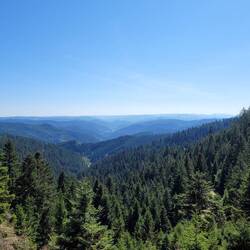 Bisher gefällt mir die Tour sehr gut, denn man ist zwar im Schwarzwald unterwegs aber hier ist der Wald nicht so dicht und dunkel und man hat immer wieder auf den Anhöhen freien Blick auf die umliegende Gegend. Bei dem Wetter einfach nur ein Traum 😊