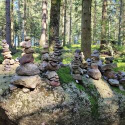 Heute ließ ich mir etwas Zeit mit dem Aufbruch, denn heute standen nur ca. 17 km bis zum Harkhof an. Ich musste jedoch erstmal wieder von Herbstwasen aufwärts zurück zum Westweg laufen. Es war etwas abenteuerlich, da ich einen Hang zur Straße hinaufklettern musste und dann an dieser noch ein Stück entlang gelaufen bin. Die LKW donnerten rasant an mir vorbei, dazwischen lag nur eine kleine Leitplanke zum Schutz 😅 Aber dann war ich endlich zurück auf dem Westweg und es konnte weiter gehen. Es kam ein langer schmaler Pfad durch einen Bannwald, es herrschte eine wunderbare Stille. Ich plante mir heute drei Abstecher leicht abseits des Westweges mit ein, da ich genügend Zeit hatte. Zuerst lief ich einmal die Teufelskanzel durch, ein anspruchsvoller Pfad mit vielen steilen Treppen. Es folgte ein Abstecher zum Glaswaldsee, wo ich meine Mittagspause bei einer wundervollen Aussicht auf den See verbrachte. Danach ging ich noch den Rundweg zum Klagstein, ein großer Felsbrocken der aus mehreren Gesteinsplatten besteht. Ich bin hinauf geklettert aber der Wald war so dicht bewachsen, dass ich keine gute Aussicht hatte. Die letzten Kilometer bis zum Harkhof zogen sich dann endlos lange auf breiten Forstwegen durch den Wald...uff! Aber das gehört nun mal bei Mehrtagestouren mit dazu. Ich erreichte gegen 16.00 Uhr den Harkhof, wo ich mich zu anderen Westwegwanderern setzte, um eine kleine Stärkung einzunehmen. Nun sitze ich hier im Matratzenlager, wo ich bisher aber alleine bin, und schreibe diesen Footprint. Gleich gibt es noch ein zünftiges Abendessen, etwas Flüssigkeit und hoffentlich gute Gespräche mit den Mitwanderern.