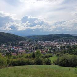Ich kochte mir am Aussichtsturm einen Porridge, um mich für den langen Abstieg nach Kandern zu stärken. Es ging zuerst über steile schmale Pfade und später sehr lange über breite Forstwege abwärts. Zwischendurch besuchte ich noch die Sausenburg und von dem Turm aus konnte ich auch schon Basel erkennen, mein morgiges Finale.