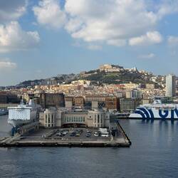 Heute gab es erstmal ein gemütliches Frühstück bei uns in der Kabine und ein Bad im Pool sowie Whirlpool bevor wir dann gegen Mittag in Neapel angekommen. An sich hatten wir nicht wirklich wasLue lisää