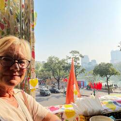 Ein letztes Getränk auf einer Bank beim Schildkrötensee und ein nettes Gespräch mit einer jungen Vietnamesin!