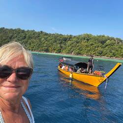Nach eineinhalb Stunden nervig rüttelnder, ohrenbetäubender und schaukelnder Fahrt übers offene Meer, auf Surin Island wurden alle Schnorchler und Guides abgesetzt! Darunter waren auch 8 ältere Wiener/Umgebung Damen, die einer großen Reisegruppe angehören! Bis jetzt hatte ich nur zwei Österreicherinnen getroffen und jetzt in geballtem Ausmaß am Tauchboot! Wie ironisch!