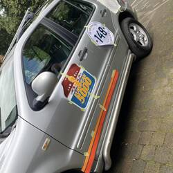 Letzte Vorbereitung - Sponsoren kleben! Equipment: Ein Fön und ein Gin!