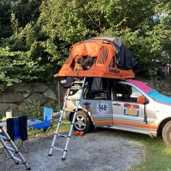Nochmal schnell ne Lösung gefunden wie Elli ins Dachzelt kommt! 👏🏼👏🏼