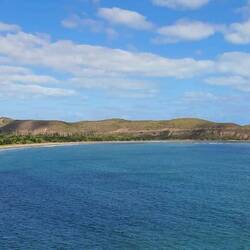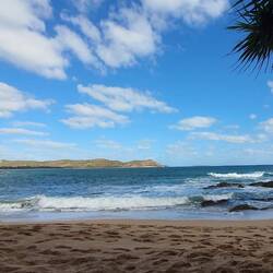 Tosende Wellen die ca. 1km vor dem Strand brechen und deren Rauschen man den ganzen Tag zuhören könnte. Das Meer schillert in allen Blautönen, die das Farbspektrum hergibt, der Sand ist ganz hell,もっと詳しく