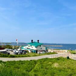 Dann gibt es eine Belohnung 🍻 mit Blick auf die Küste und das Meer ……..