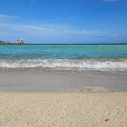 Wenn das Wasser die gleiche Temperatur hat wie es draußen ist. Noch ein bisschen chillen, in die Wellen springen und die Füsse mit Sand spielen lassen.