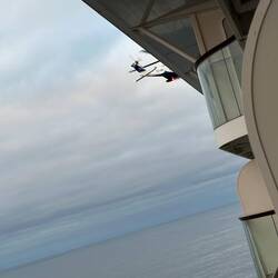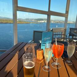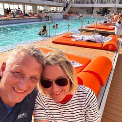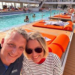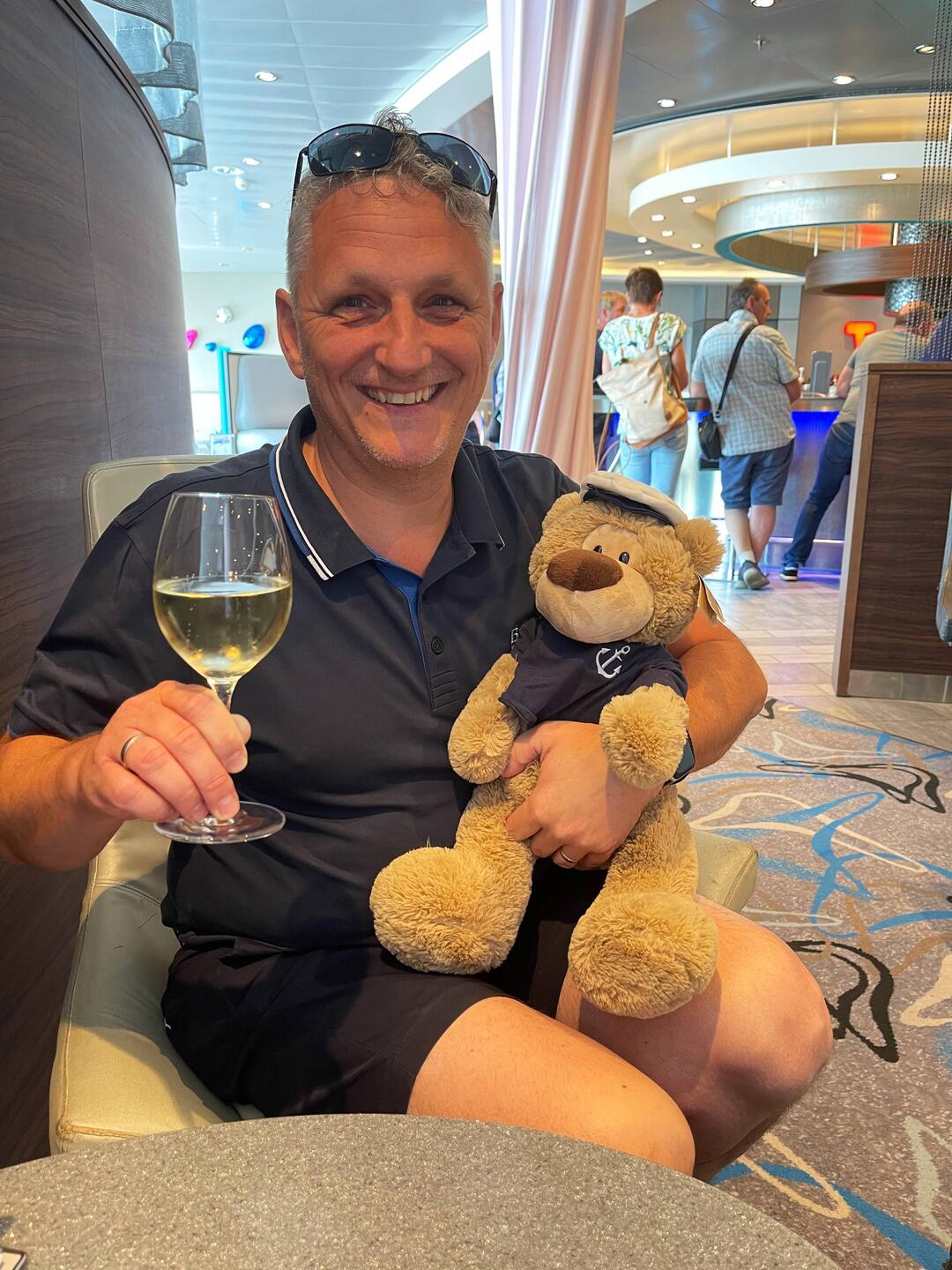 Angekommen! Endlich beginnt der Urlaub auf der Mein Schiff 3! Um die anstrengende Anfahrt zu vergessen, könnten wir uns sofort ein Gläschen Sekt und Aperol.