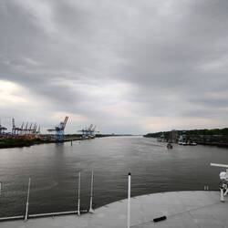 Pünktlich zur Einfahrt in den Hafen fängt es an zu regnen.