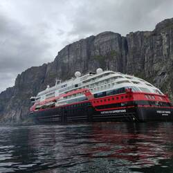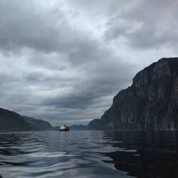 Unsere Einfahrt in den Lysefjord erfolgt mit mystischer Nebelstimmung.