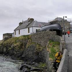 Der heutige Tag begann nach dem Einlaufen in den Hafen von Lerwick mit der Immigration. Jeder mußte persönlich mit seinem Paß zur Gesichtskontrolle erscheinen 😁