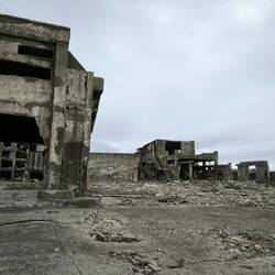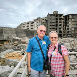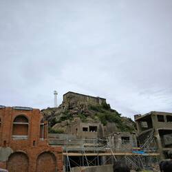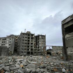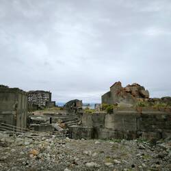 Mit dem Boot fahren wir am Vormittag nach Gunkanjima, der seit 1974 verlassenen Kohle-Insel.
