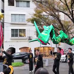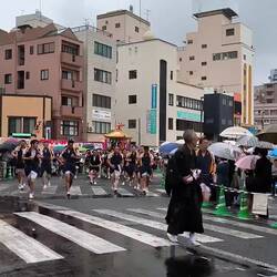 Zurück in Nagasaki regnet es. Wir lassen uns trotzdem nicht abhalten, um den Umzug zum Erntedankfest anzuschauen.