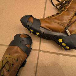Gestern Abend gab es Eisregen, spiegelglatt der gefrorene Boden.